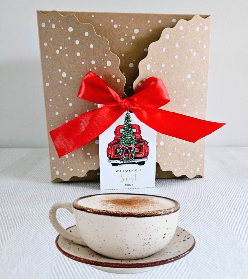 Jako pomysł na prezent, aby podziękować, gratulować, życzyć wszystkiego, co najlepsze, proponujemy ozdobnie zapakowany kubek Oskar, z pachnącą lawendą i karnetem z personalizowaną dedykacją. Może on zawierać mówiące wszystko: "Dziękuję", "Wszystkiego najpiękniejszego na nowej drodze życia", ale możesz również przesłać do nas pomysł swojej dedykacji, która znajdzie się na karnecie - z ogromną przyjemnością spersonalizujemy Twój prezent :)